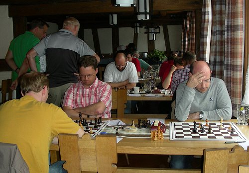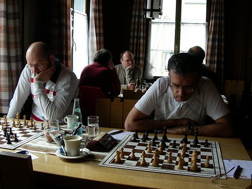 Partieverlust durch ZeitüberschreitungAm fünften Brett schaffte es Robert Sandholzer nicht, die schwarze Festung ins Wanken zu bringen. Michael Norgauer konnte alle Angriffe erfolgreich abwehren, verbrauchte dazu aber sehr viel Bedenkzeit und überschritt im 34. Zug die Zeitlimite. Joker Erwin Frei zeigte eine solide Leistung und drückte mit allen Schwerfiguren auf die weisse Königsstellung. Doch Marcel Marentini durchschaute alle Drohungen, sodass die Partie nach 30 Zügen in ein Remis durch Zugswiederholung mündete. Zum gleichen Ergebnis kamen Sandro Schmid und Klaus Monteforte. Der Mannschaftsleiter der Rheintaler lehnte zunächst ein Friedensangebot ab, konnte aber keine nennenswerten Fortschritte erzielen und willigte nach viereinhalb Stunden ins Remis ein. Zum Matchwinner wurde einmal mehr Rainer Bezler, der das Spitzenbrett gegen den Elo-Riesen Dieter Knödler verteidigte. Angesichts der Wertungszahlen – 2227 gegen 2350 Ratingpunkte – waren die Rollen klar verteilt. Doch der Favorit konnte seine theoretische Überlegenheit auf dem Brett nicht umsetzen. Ein weiteres Remis schien sich schon anzubahnen, da öffnete Dieter Knödler übermütig die Königsstellung. Darauf hatte der Rheintaler nur gewartet. Mit Dame, Läufer und Springer nahm er den schwarzen König ins Visier und zerrte ihn aus seinem Schlupfwinkel. Rheintal I - Bodan Kreuzlingen II 5:3Rainer Bezler - Dieter Knödler 1:0, Sandro Schmid - Klaus Monteforte ½:½, Gernot Hämmerle - Stephan Fessler 0:1, Erwin Frei - Marcel Marentini ½:½, Robert Sandholzer - Michael Norgauer 1:0, Ruedi Affeltranger - Jochen Ringelsiep 1:0, Peter Maier - Hubert Zwick 1:0, Kurt Kaufmann - Kai Jehnichen 0:1 SMM 2-11: Gerechtes UnentschiedenIn der zweiten Runde der Schweizerischen Mannschaftsmeisterschaft spielte der Schachclub Rheintal gegen Herrliberg I unentschieden 4:4. Insgeheim hatten sich die Rheintaler Schachstrategen aber mehr erhofft. Mit dem Ablehnen eines Remisangebots ist es so eine Sache. Man übernimmt die moralische Verpflichtung, auf Sieg zu spielen und erhöhte Risiken einzugehen. Auf der anderen Seite fühlt sich der Kontrahent in seiner Schachehre angegriffen und nimmt eine Jetzt-erst-recht-Stellung ein. Manch einer hat es schon bitter bereut, dass er ein Friedensangebot ausgeschlagen hat. Diese Gedanken gingen Sandro Schmid durch den Kopf, als ihm Tamas Erdelyi bei vollem Brett die Punkteteilung offerierte. Lieber den Spatz in der Hand als die Taube auf dem Dach, dachte sich Sandro Schmid und willigte in den Vorschlag ein. Wenig später wiederholte sich dieses Ritual am fünften Brett. Remis?, liess sich Hansjörg Ili von der anderen Tischseite her vernehmen. Remis! war prompt die Antwort von Peter Maier. Viermal unentschiedenWesentlich länger balgten sich Kurt Kaufmann und Walter Zollinger herum. Keine Seite konnte nennenswerte Fortschritte erzielen und bei absolut gleicher Materialverteilung war der Friedensschluss kurz nach der Zeitkontrolle unumgänglich. Einen spannenden Kampf lieferten sich Robert Sandholzer und Thomas Kuhn. Robert trug einen stürmischen Angriff gegen den weissen König vor. Um der schwarzen Initiative Einhalt zu gebieten, musste der Zürcher einen Springer opfern. Er erhielt dafür allerdings drei verbundene Mehrbauern, die im Endspiel höher zu werten sind als die Figur. Doch soweit liess es Robert nicht kommen. Mit seiner Dame bot der dem weissen König unaufhörlich Schach – Remis Nummer vier. Pleiten, Pech und PannenObwohl Ruedi Affeltranger die weissen Figuren führte, diktierte der Gegner das Spiel. Zwar war die Materialbilanz mit beiden Türmen gegen die Dame ungefähr ausgeglichen, doch seine Figuren harmonierten überhaupt nicht miteinander. Die schwarzen Streitkräfte hingegen waren alle gegen den weissen König gerichtet, der sich im 27. Zug der Festnahme nicht mehr entziehen konnte. Ein sicherer Wert im Rheintaler Team ist Günter Amann. Mit seiner Kavallerie ritt er eine scharfe Attacke gegen den weissen Königsflügel. Um seine Dame zu retten, hätte Arnold Torricelli mindestens zwei Bauern hergeben müssen. Stattdessen zog er es vor, sofort die Waffen zu strecken. Doch der Ausgleich dauerte nicht lange. Man kann Gernot Hämmerle wirklich nicht vorwerfen, er wäre ein Materialist. Keiner opfert so viele Figuren wie er. Manchmal würde man sich aber doch wünschen, er ginge mit seinem Material etwas geiziger um. Er hatte Marcel Bodmer praktisch schon überspielt, da liess er in voller Absicht einen Turm einstehen. Der Zürcher wehrte die ungestümen Angriffsversuche souverän ab und landete in einem Endspiel mit entscheidendem Materialvorteil. Eine schöne positionelle Leistung zeigte Rainer Bezler am zweiten Brett. Sein Läuferpaar garantierte ihm ein dauerhaftes Übergewicht. Bis zum Sieg wäre es aber noch ein hartes Stück Arbeit gewesen. Zum Glück verkürzte Rodrigo Meier die Angelegenheit radikal, indem er mit seinem Läufer in eine tödliche Fesselung tappte. So konnte Mannschaftsleiter Sandro Schmid nach knapp fünf Stunden Spielzeit doch noch das rettende 4:4 in das Wettkampf-Formular eintragen. Herrliberg I - Rheintal I 4:4Arnold Torricelli - Günter Amann 0:1, Rodrigo Meier - Rainer Bezler 0:1, Thomas Kuhn - Robert Sandholzer ½:½, Tamas Erdely - Sandro Schmid ½:½, Hansjörg Illi - Peter Maier ½:½, Marcel Bodmer - Gernot Hämmerle 1:0, Walter Zollinger - Kurt Kaufmann ½:½, Paul Remensberger - Ruedi Affeltranger 1:0 SMM 3-11: Schachclub Rheintal im HochSeit der dritten Runde der Schweizerischen Mannschaftsmeisterschaft wissen die Schachfreunde aus der Innerschweiz, was ein Rheintaler Föhnsturm ist. In Berneck wurden sie mit 7:1 Punkten von den Brettern gefegt. Eröffnet wurde das Schützenfest von Klaus Doskocil. Nach einem Figurenverlust im 16. Zug verlor sein Gegner die Lust, die hoffnungslose Partie zu Ende zu spielen. Am Spitzenbrett lehnte Rico Zanga ein Friedensangebot von Peter Wahl zu Recht ab. Der ständig wachsende Druck gegen den im Zentrum s